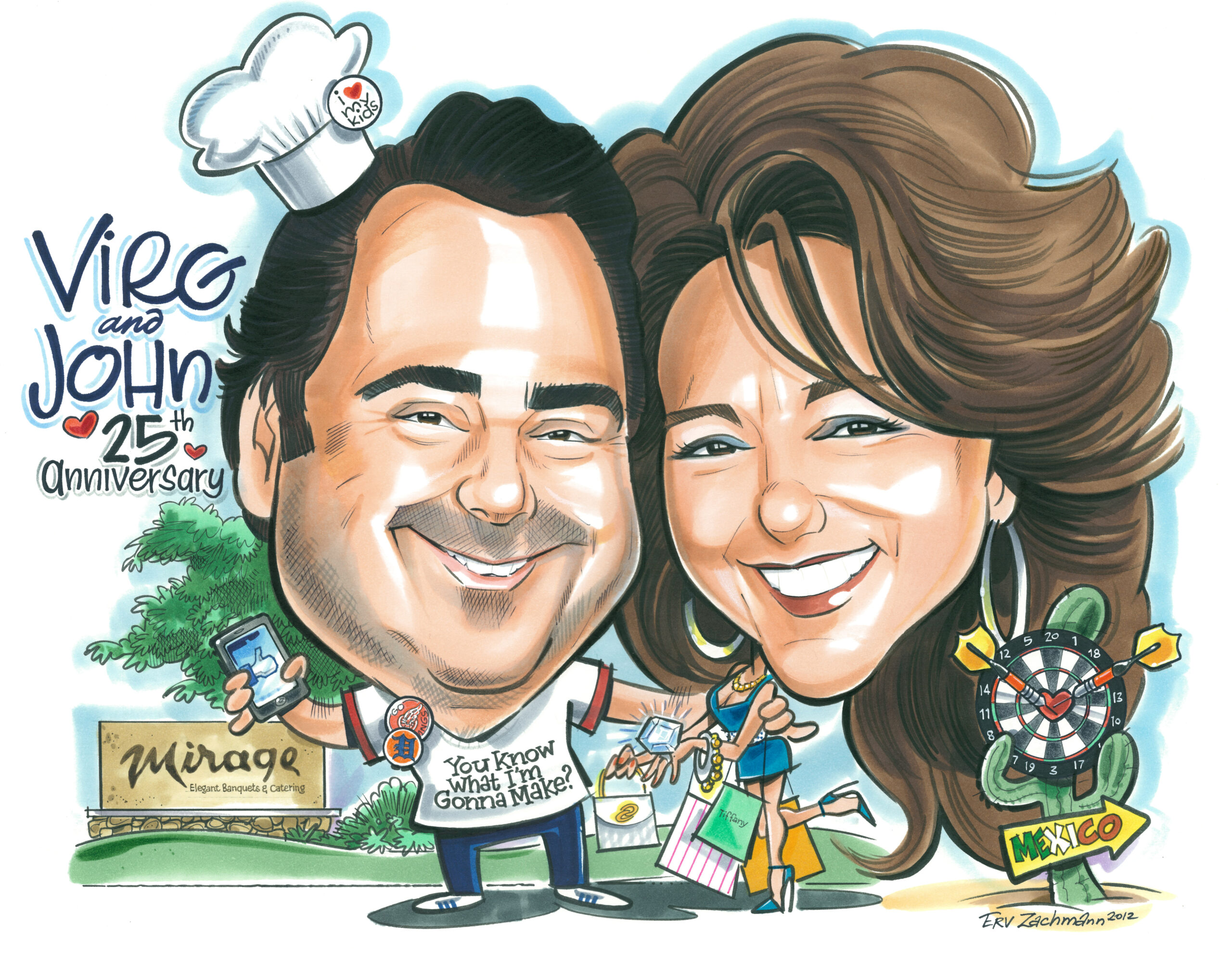 Hello I'm Erv, I began drawing faces at a very early age-and while attending CCS art school I had the opportunity to draw lives caricatures at a fun corporate party. 43 years later I'm still at and still honing my skills. I really love to draw caricatures and enjoy the conversation while sketching both kids and adults. I feel great joy to see the big smile on a 4 year old's face when they see their first caricature. I accentuate the positive-reduce wrinkles-and sometimes give em' a mustache. I pride myself on capturing the likeness of the guest and creating an experience that onlookers also enjoy and can participate in the creation with hints and suggestions.