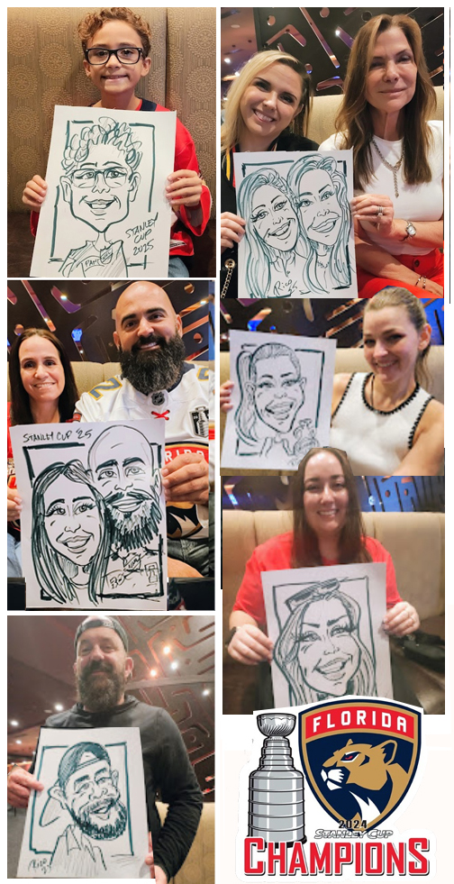 Traditional or Digital*Great for any occasion! Portable studio with French Easel, Display & lightsFast... doing up to 15 "flattering" Portrait Style caricatures per hour. Perfect keepsake for your guests to take home! Weddings & parties at major hotels/venues and corporates include Miami Marlins/Dolphins, AT&T, JP Morgan, Lincoln Road Mall, Burger King, Van Gogh Exhibition, Hyundai of Miami, Ricoh Corp, Chewy, Cheney Bros., Alzheimer Assoc., Cerebral Palsy, Symplr, Diplomat, Hilton, etc. and official city functions for Cooper City, Oakland Park, Hialeah, Margate, Tequesta & more! . Caricatures are done on 11 X14 inch acid free card stock