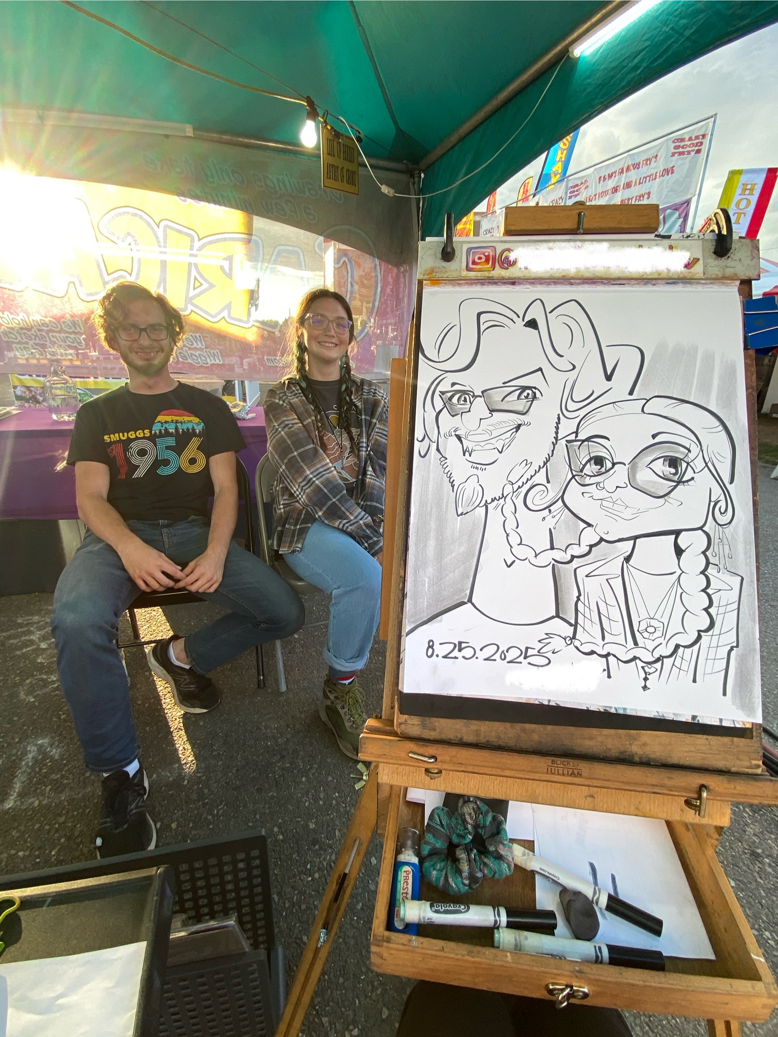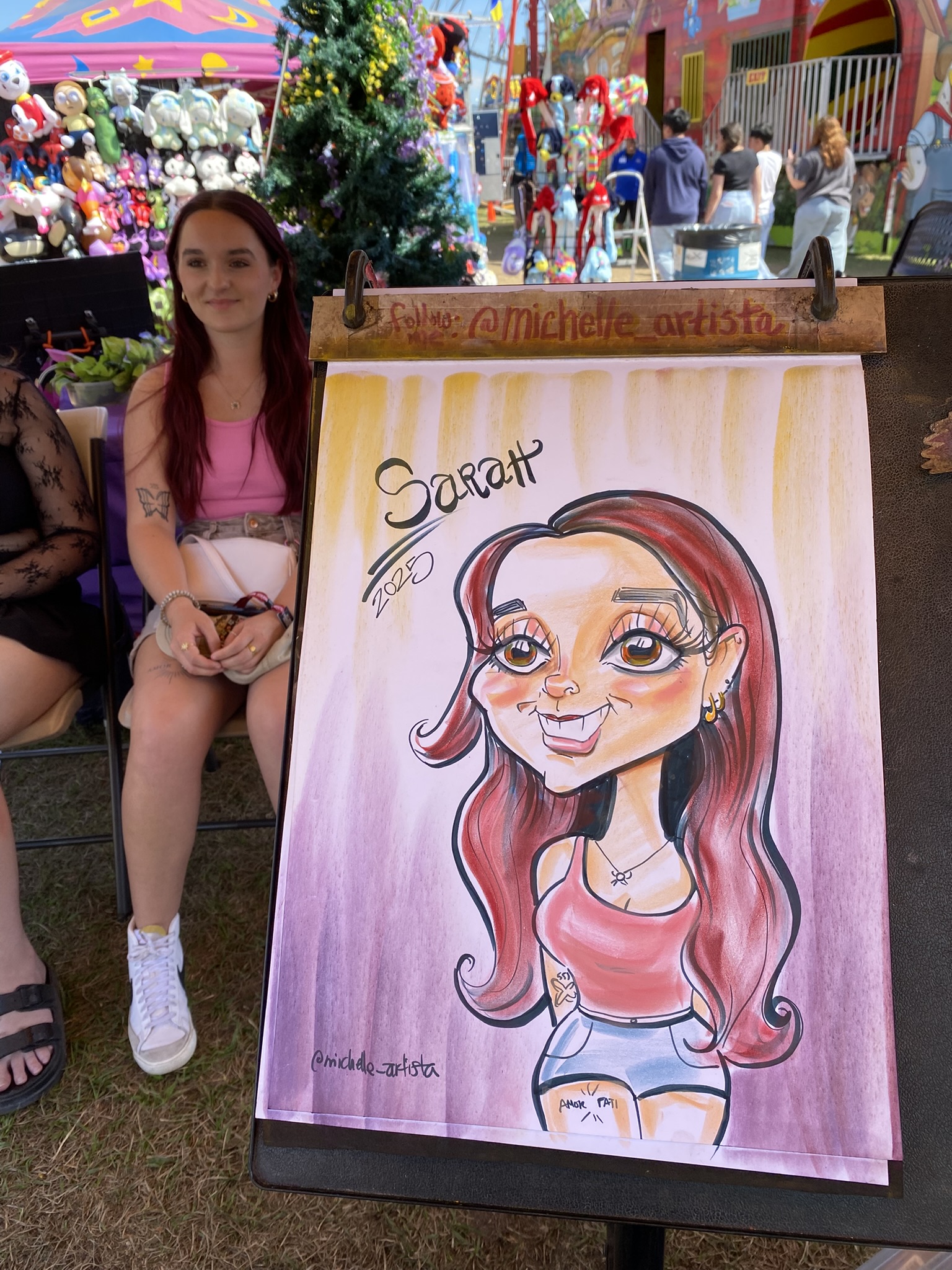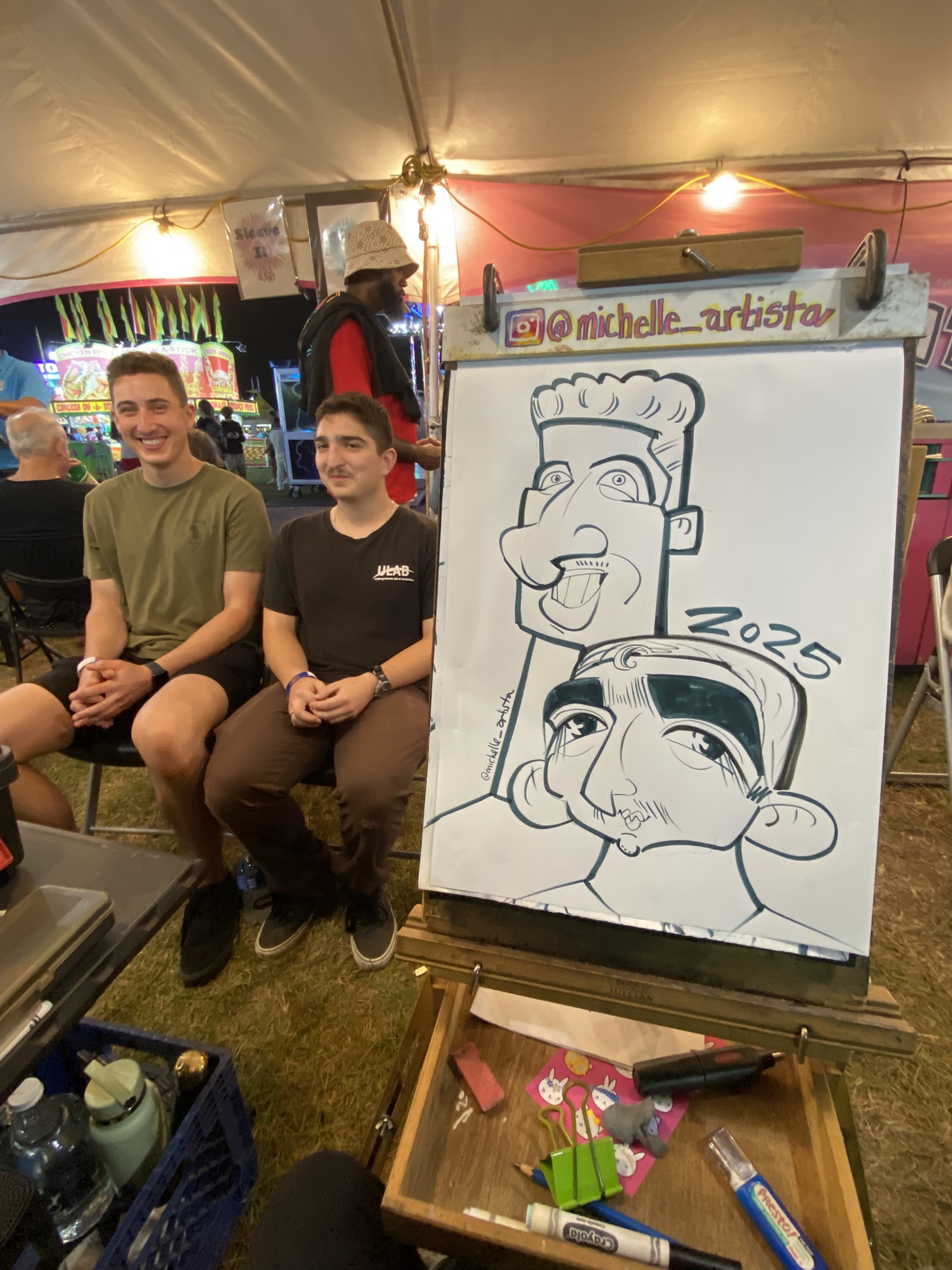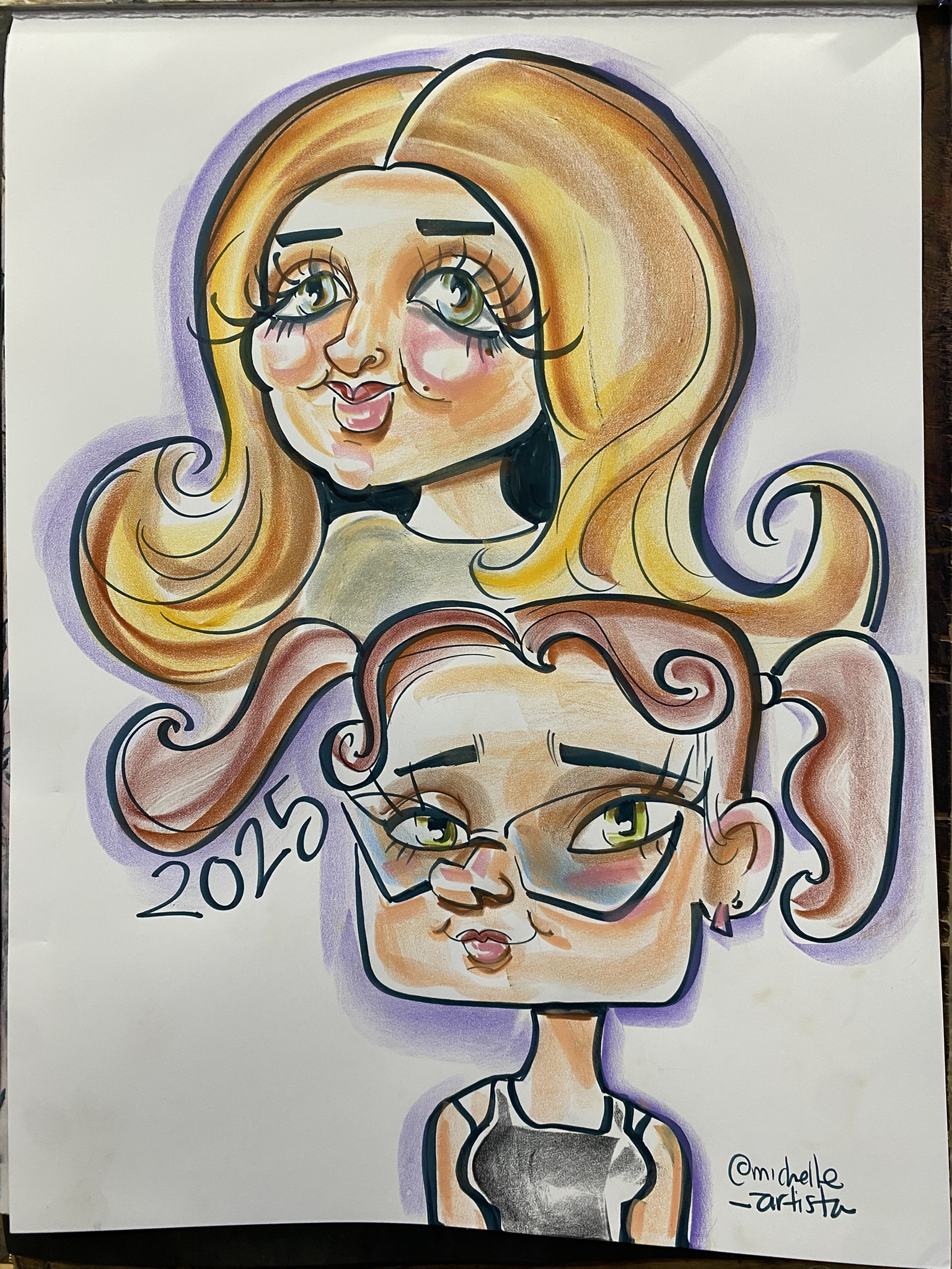 Michelle has been an artist her whole life, mostly painting in oils, and started her caricature journey in 2019 at the Santa Cruz boardwalk. Since then, she has worked all over the country at carnivals, festivals, and events, working alongside some of the best artists in the world. She is grateful every day to draw cartoons for a living, and is dedicated to constantly improving her craft. She does her best so that her guests enjoy their experience with her.