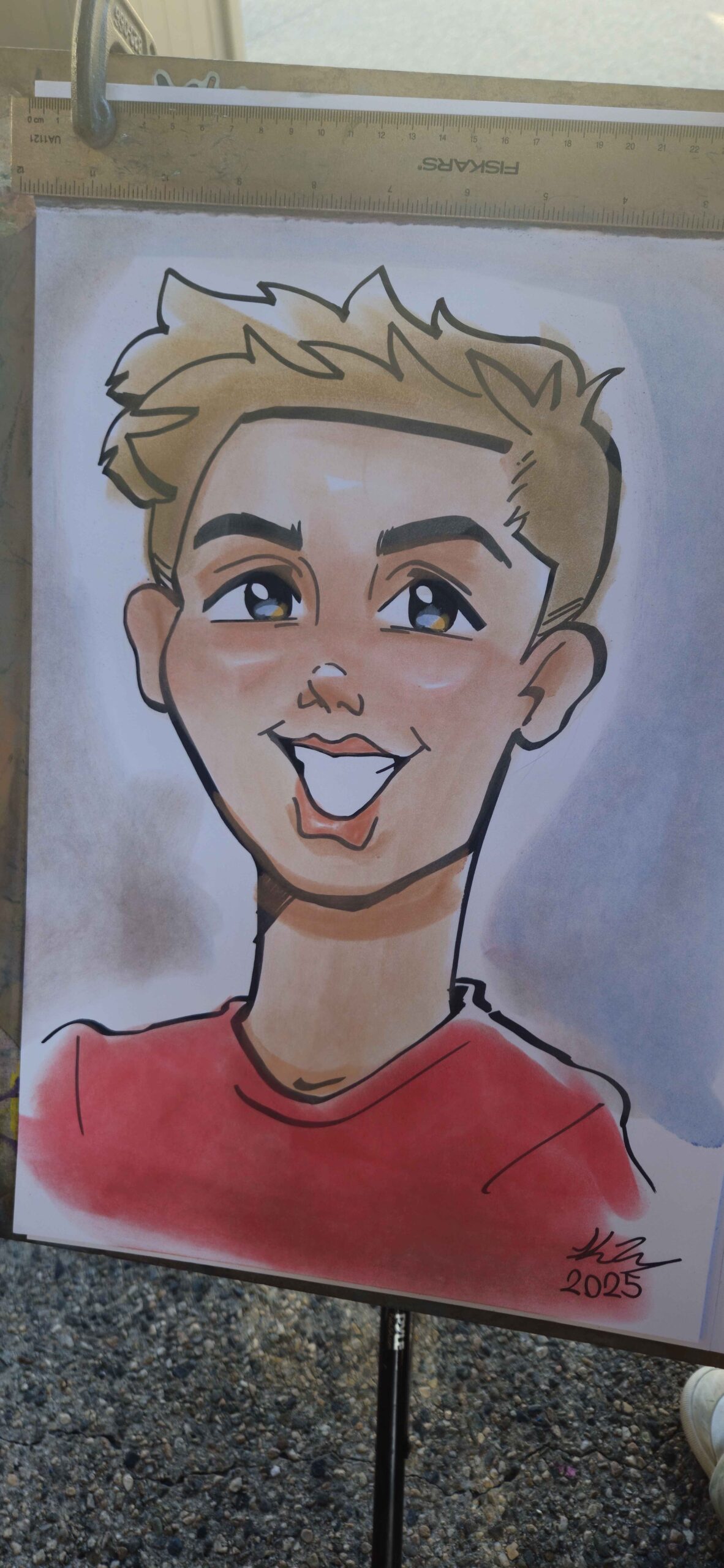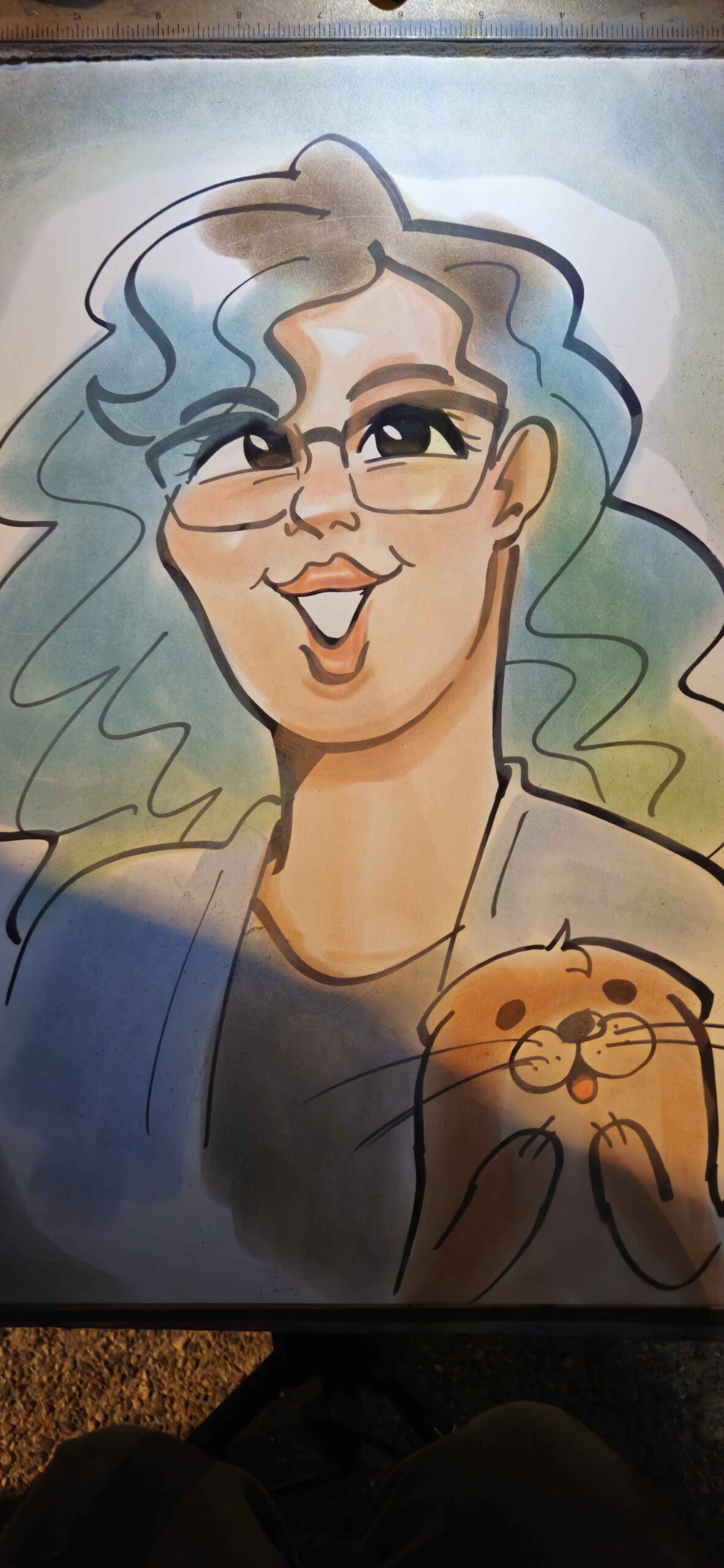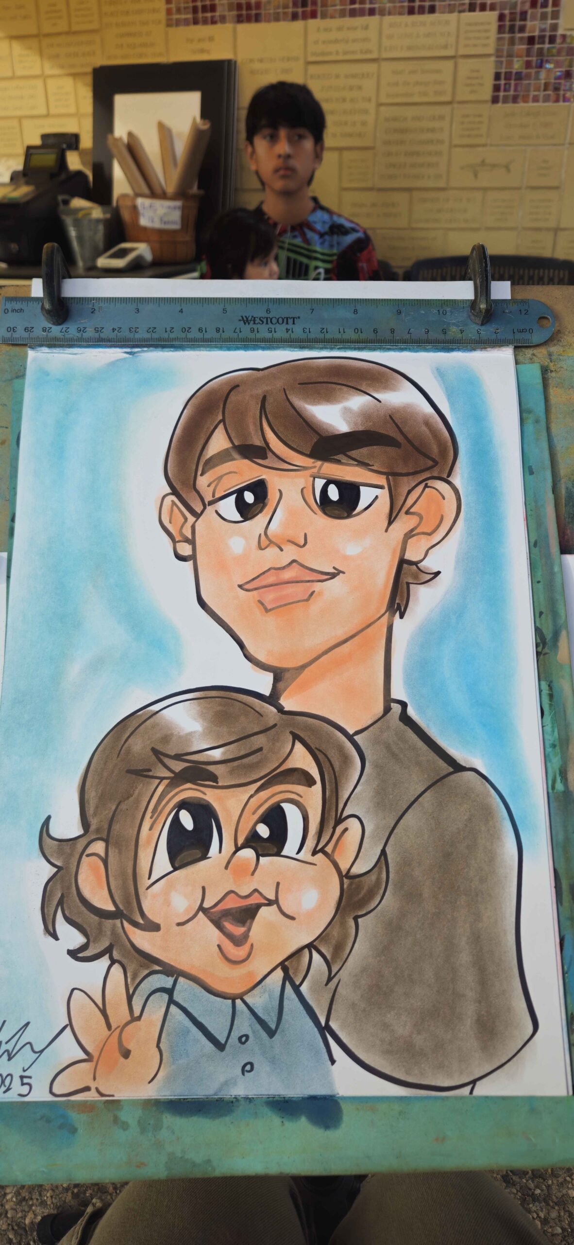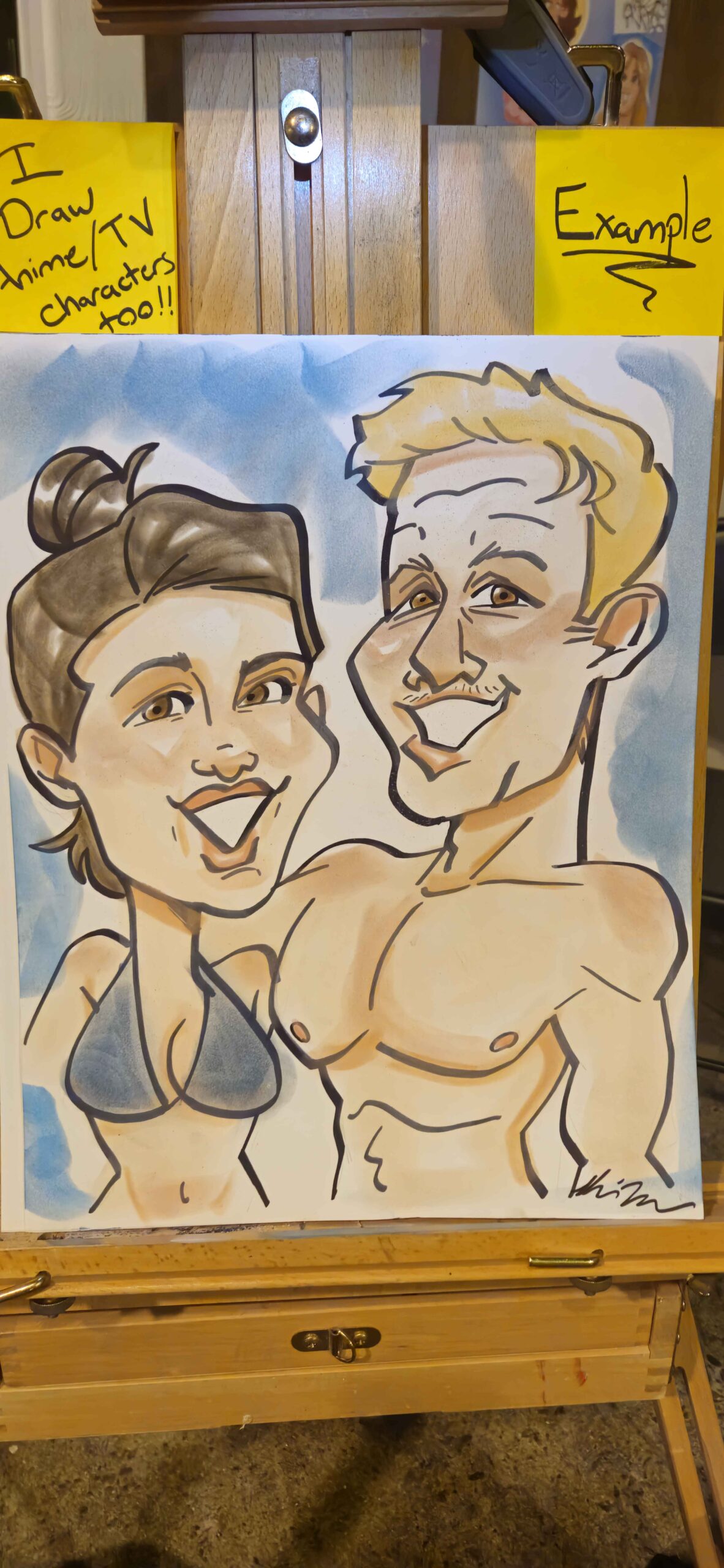 Hi there! I'm a fairly seasoned caricature artist located in Orange County. I specialize in drawing kids, families, and sea critters in both color and black and white! I'm also more than happy to draw your favorite tv, movie, or anime characters for you, if you'd like! If you're looking for a fun and talkative artist for your party or event, I'm almost always available! Please shoot me a text or email if you'd like to book my services!