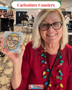 - Business Mixers and Chamber Events: Make a lasting impression at business events by offering personalized Caricature coasters or branded eSketches™. It’s a smart and creative alternative to typical networking fare.